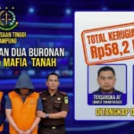 Kejati Lampung menangkap dua buronan (DPO) kasus korupsi mafia tanah dan proyek rumah dinas Bupati di Jakarta. Total kerugian negara mencapai Rp58,2 miliar.